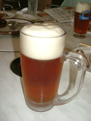 けっこー茶色いビールで、味は地ビールっぽい味でした。オレは黙って一番搾りの方が美味いと思いますが、他の方々はまんざらでもないようでした。う~ん。