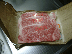 さて、この肉を焼くわけですが、そこいらの肉とはワケが違います。間違いがあってはいけないので一緒に入ってた焼き方の説明書?みたいなのを熟読。取説なんぞ読まないオレでもさすがに慎重にならざるを得ない(貧乏性)